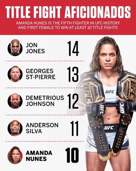 Amanda Nunes is now fifth on the total number of title wins in the UFC. Post navigation Around the world of MMA: July 29-August 2 Around the world of MMA: August 5-9
