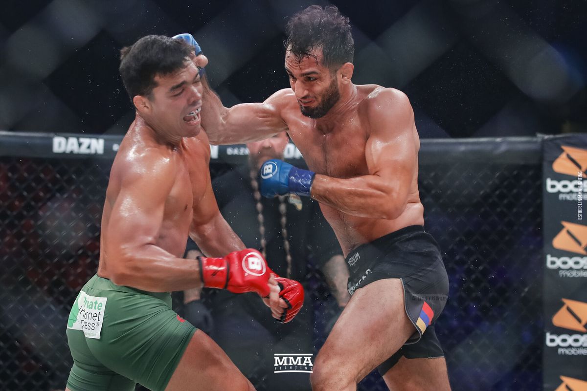 Gegard Mousasi (right) punches Lyoto Machida (left). Pic by MMA Fighting. Credit: Esther Lin