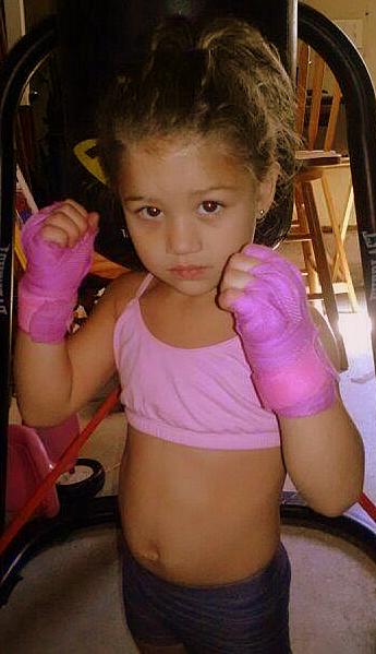 “Later on when she was about 3 and a half I bought her pink boxing gloves from amazon,” said Mike. “Then oh my god, ever since then she took off with it. Once she got the gloves it was just on. She wanted to wear the gloves around everywhere too.”