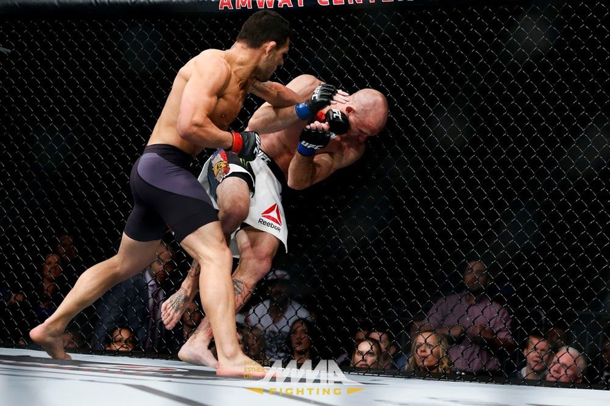 Rafael dos Anjos (left) punching Donald Cerrone. Pic by MMA Fighting.com. Credit: Esther Lin