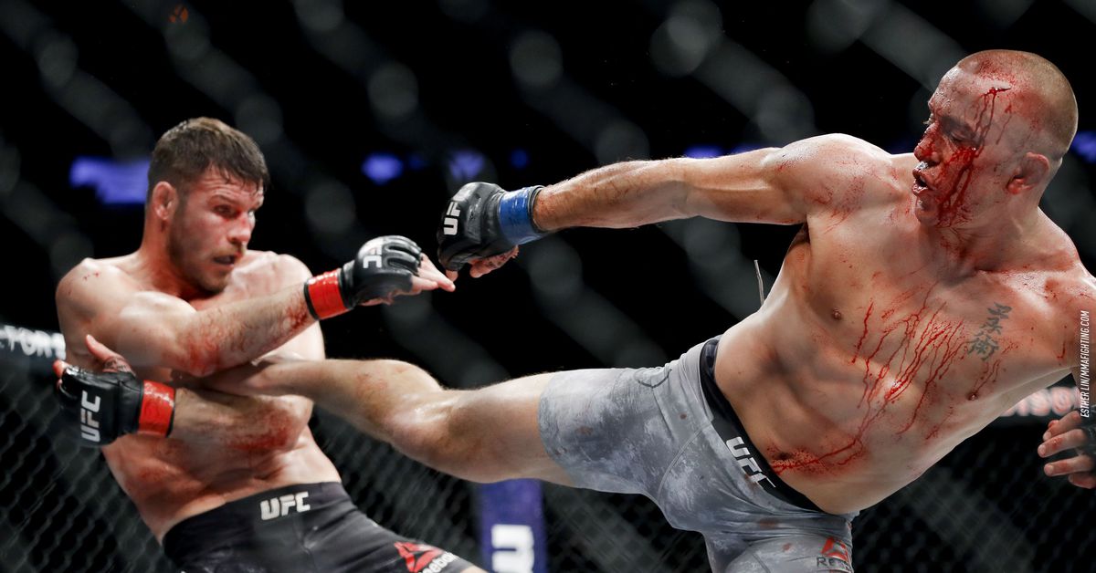 Georges St-Pierre (right) vs Michael Bisping (left). Pic by MMA Fighting. Credit: Esther Lin