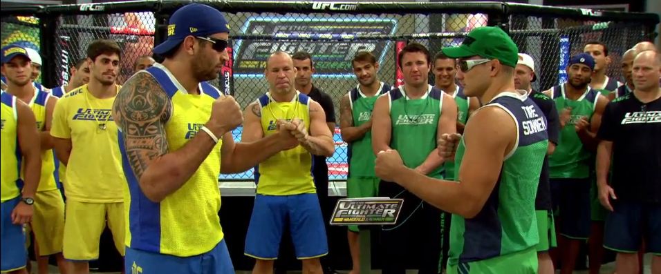 The episode opens with Team Silva head coach Wanderlei Silva making the fight picks for the heavyweights, matching up Team Silva’s Antonio Branjao against Team Sonnen’s Vitor Miranda. The decision draws some criticism from Team Sonnen jui jutsu coach Vinny Magalhaes who basically calls Silva a hypocrite considering that in the first season Vitor Belfort made a similar decision drawing criticism from Silva. Silva however tries to justify it by saying that Branjao and Miranda aren’t that close to it doesn’t matter. Despite this both fighters have resolved to not let this decision get between their friendship. They even agree to joke around at the weigh-ins wearing sunglasses.