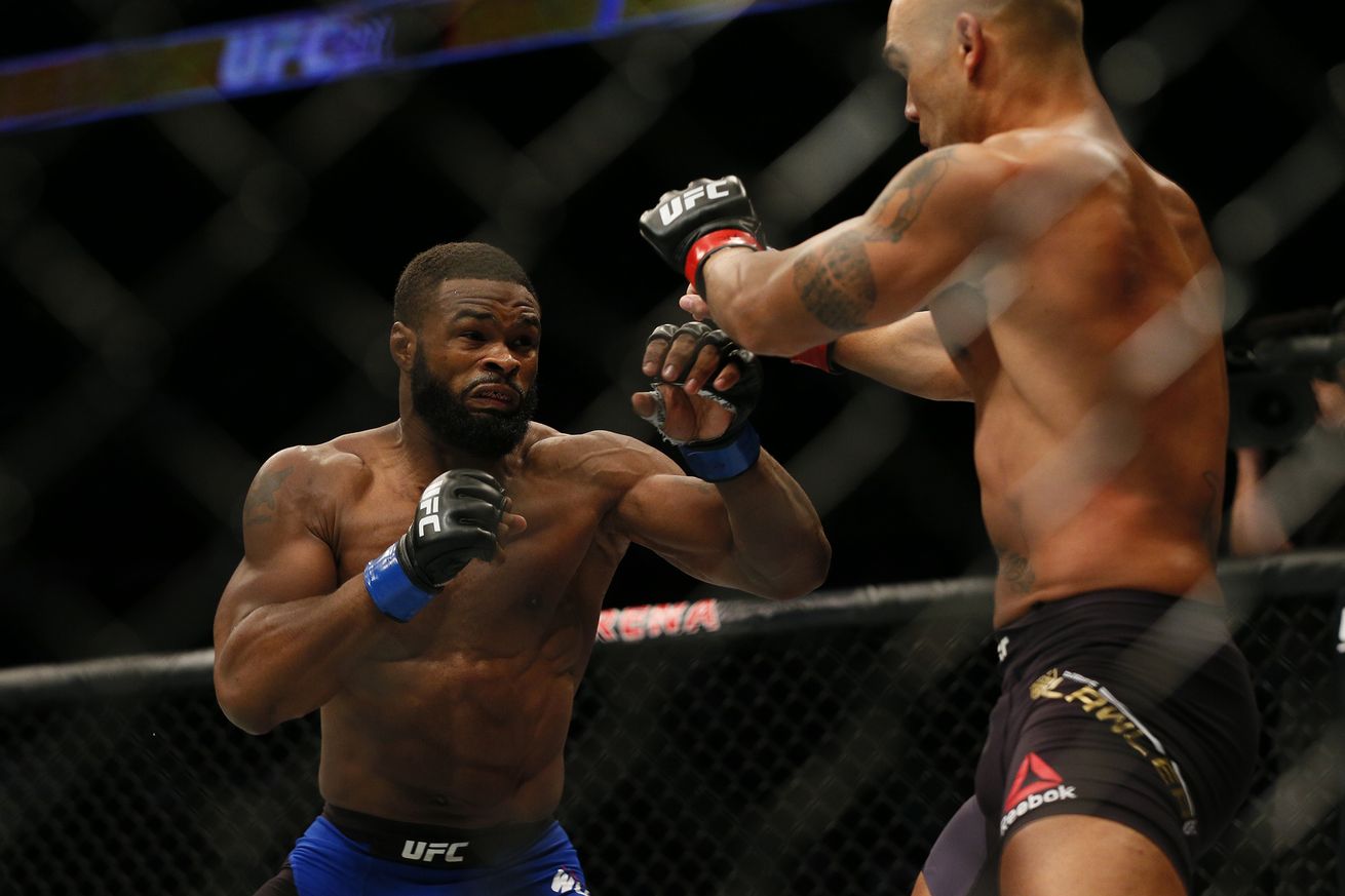 Tyron Woodley (left) vs Robbie Lawler. Pic by USA TODAY Sports. Credit: Butch Dill
