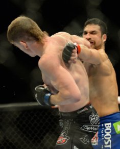 These men were at different points in their careers when they met at UFC on Fox 14 on Sweden. Phil Davis has just rebounded from a loss to the man who would follow him on the main card of the UFC on Fox card, Anthony Johnson. Ryan Bader on the other hand was on a three fight winning streak looking to make a title shot run. Needless to say the two wrestlers essentially made it a close boxing match with the occasional take down thrown in. The match was so close that it was a split decision that went the way of Bader.