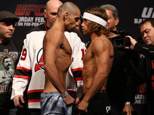 Renan Barao and Urijah Faber. Pic by SHERDOG.COM -click for source- Credit: Dave Mandel