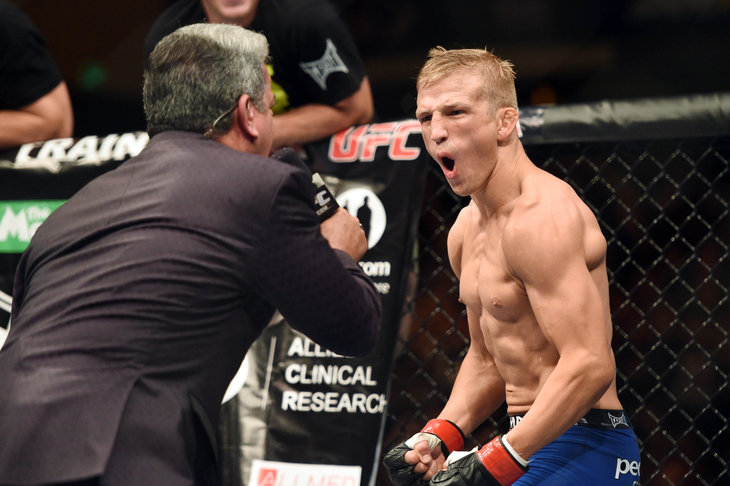 T.J. Dillashaw didn’t face Renan Barao at UFC 177, but he did have a good match with replacement Joe Soto and knocked him out. One has to admire Soto for giving Dillashaw more of a test then Barao, but it also shows that the champion is adaptable to adverse conditions.