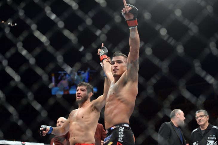Anthony Pettis (right) victorious over Gilbert Melendez (left). Pic by USA TODAY Sports. Credit: Joe Camporeale