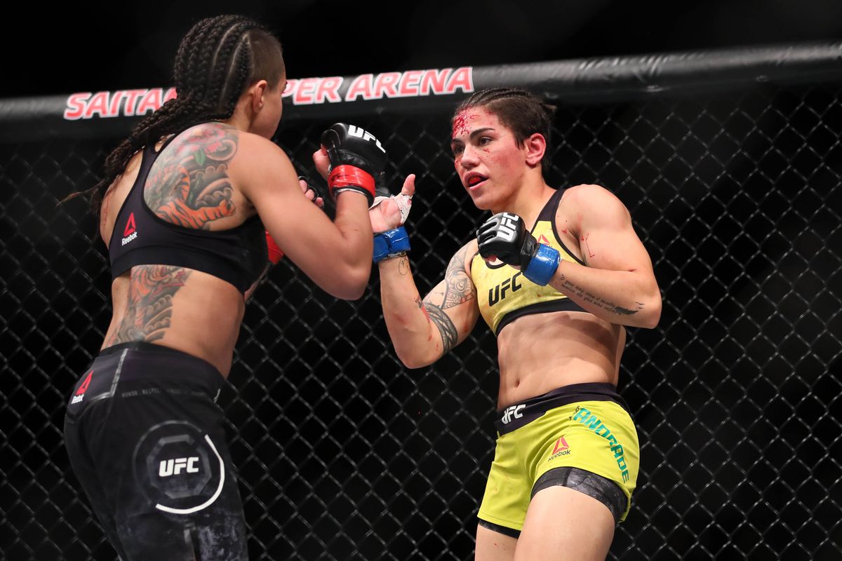 Jessica Andrade (right) vs Tecia Torres (left). Pic by USA TODAY Sports. Credit: Susuma Nagao